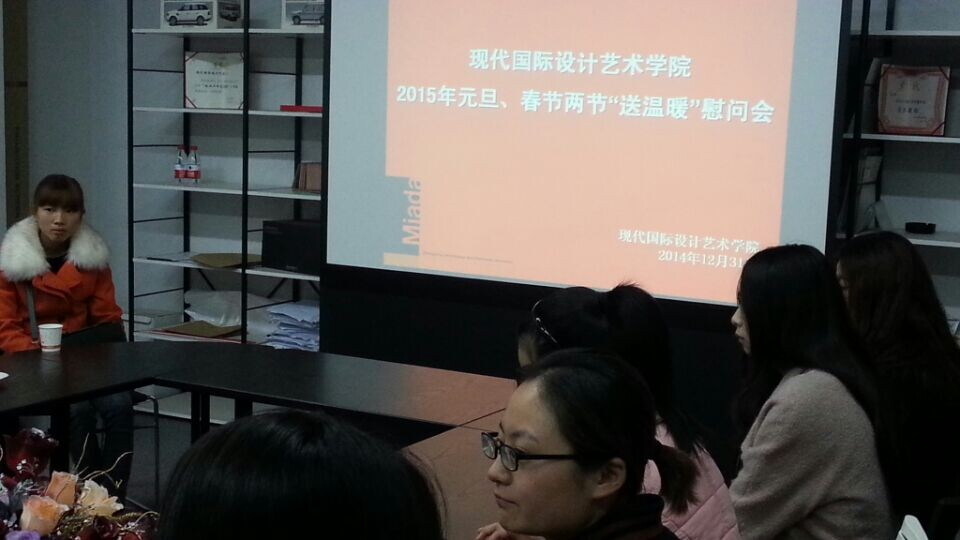 2014年12月31日下午,现代国际设计艺术分院在公司会议室举行了2015年元旦、春节两节“送温暖”慰问活动。英国365上市公司分党委冉涛副书记、英国365上市公司副经理兼现代国际设计艺术分院汪维丁经理,学团办教师陈绪娟、李红雀、王威娜,公司大一到大四14位贫困生参加了慰问活动。会议由陈绪娟老师主持。