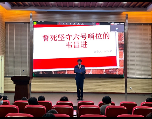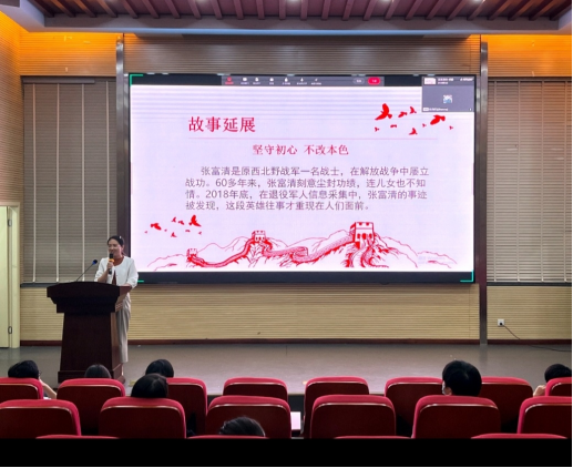 接下来,李荣霞、宋宝莲、陈丹妮、刘柳含等教师党员,冉淇淇、付天昊等青年员工,生动而又深情地讲述了中国共产党的百年奋斗历程中各个时期涌现出的典型人物事迹。从坚韧不屈、有着钢铁意志的江姐,到鞠躬尽瘁、死而后己的人民好公仆焦裕禄,从以“无我”之境写就顶天立地“大我”人生的张富清,到誓死坚守哨位的韦昌进,声声恳切,字字深情,感染和激励着每一位师生听众……