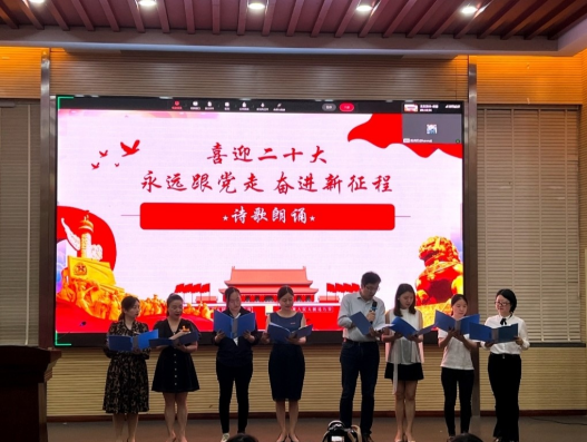 随后,王婷和辅导员们通过朗诵《党的二十大之歌》,歌颂党团结带领全国各族人民取得的丰功伟绩,歌颂党的伟大事业、伟大梦想、伟大斗争和伟大工程,表达了用优异成绩迎接党的二十大胜利召开的决心,和实现中华民族伟大复兴中国梦的信心。