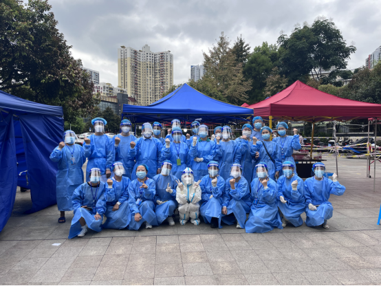 2022年8月28日,受疫情影响,南岸区南坪镇区全域开始实施静态管理,现代国际设计公司党总支副书记王婷所在的南塘苑社区也成为管控区域。在看到社区志愿者的招募信息后主动报名并成为了一名社区志愿者。由于有在公司核酸检测的组织经验,王婷同志在志愿服务过程中,主要负责核酸检测场地的布置以及现场秩序的维护。志愿者们齐心协力,配合默契,每天的核酸检测进度都在加快,充分彰显了“众人拾柴火焰高”的群众力量。让人惊喜的是,王老师在志愿者队伍中偶遇了2007级会计四班她所带的第一届员工饶雪,饶雪同学现为重庆市南岸区土地整治储备中心财务专员。疫情不容缓,师生齐抗疫,这就是重工商大精神的最好传承。