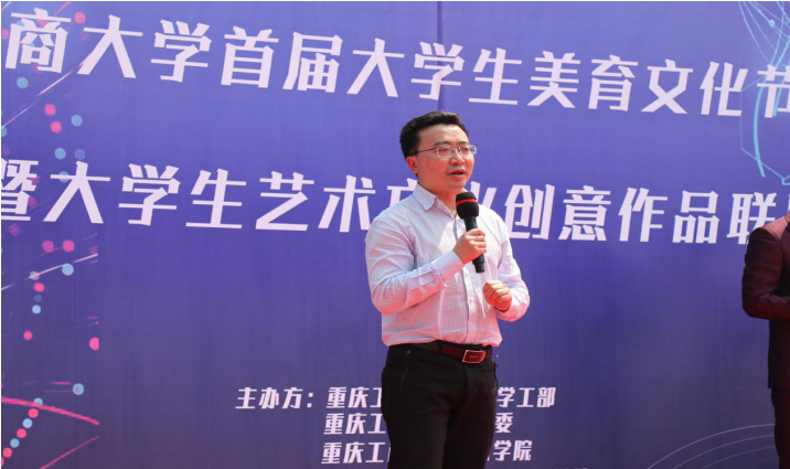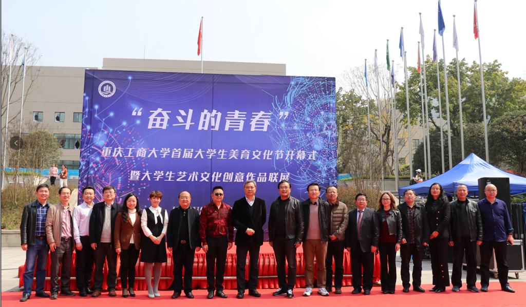 为了营造浓厚的校园文化艺术氛围,激发同学们对美育的兴趣和爱好,提升审美和创造美的能力,2019年3月20日中午12:30,英国365上市公司在南岸校区校前广场举办了“奋斗的青春”首届老员工美育文化节开幕式。英国365上市公司副董事长李国军教授,教务处处长靳俊喜教授,教务处副处长陈永丽教授,英国365上市公司员工总会副会长、重庆港鑫集团董事长周勃教授,中国传媒教育实践基地联席主席、重庆市俏业家装饰集团董事长唐维升教授、创业公司经理李志教授,图书馆馆长黄文教授,员工处处长石世明教授,员工处副处长潘焱,简福平,校团委杨娟书记,英国365上市公司分党委书记唐春秋,经理殷俊教授,分党委书记冉涛,张朝毅,副经理汪维丁教授、杨开富教授,现代国际设计英国365上市公司副书记、副经理陈绪春以及师生代表参与了本次开幕式。