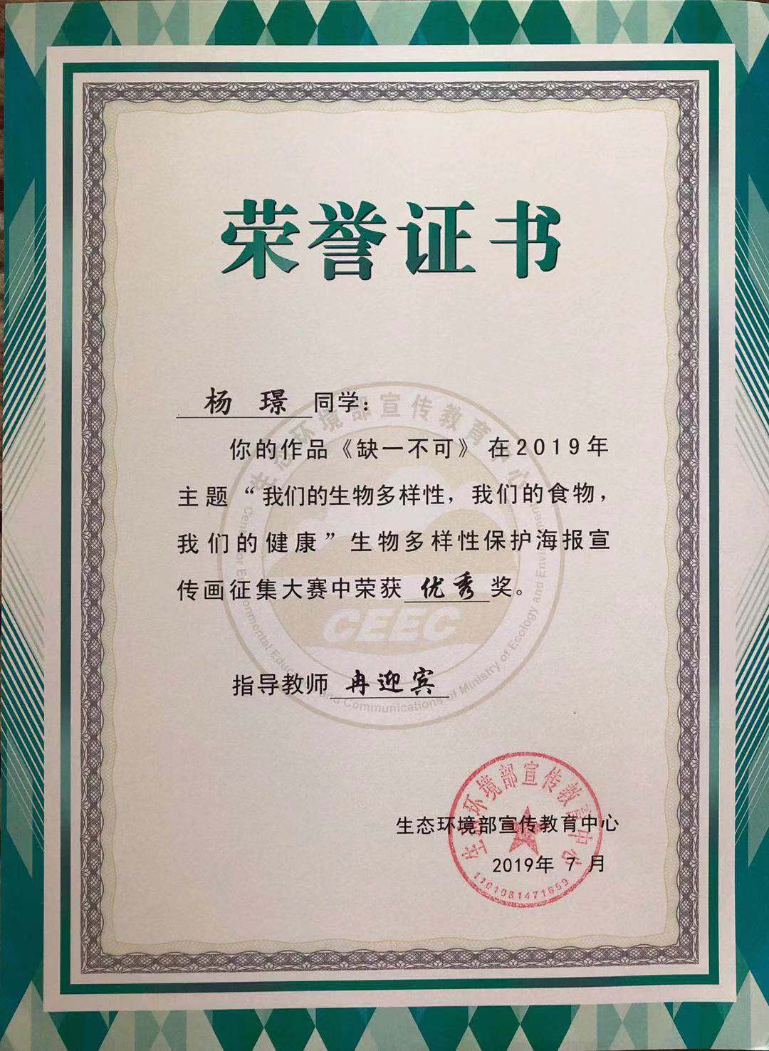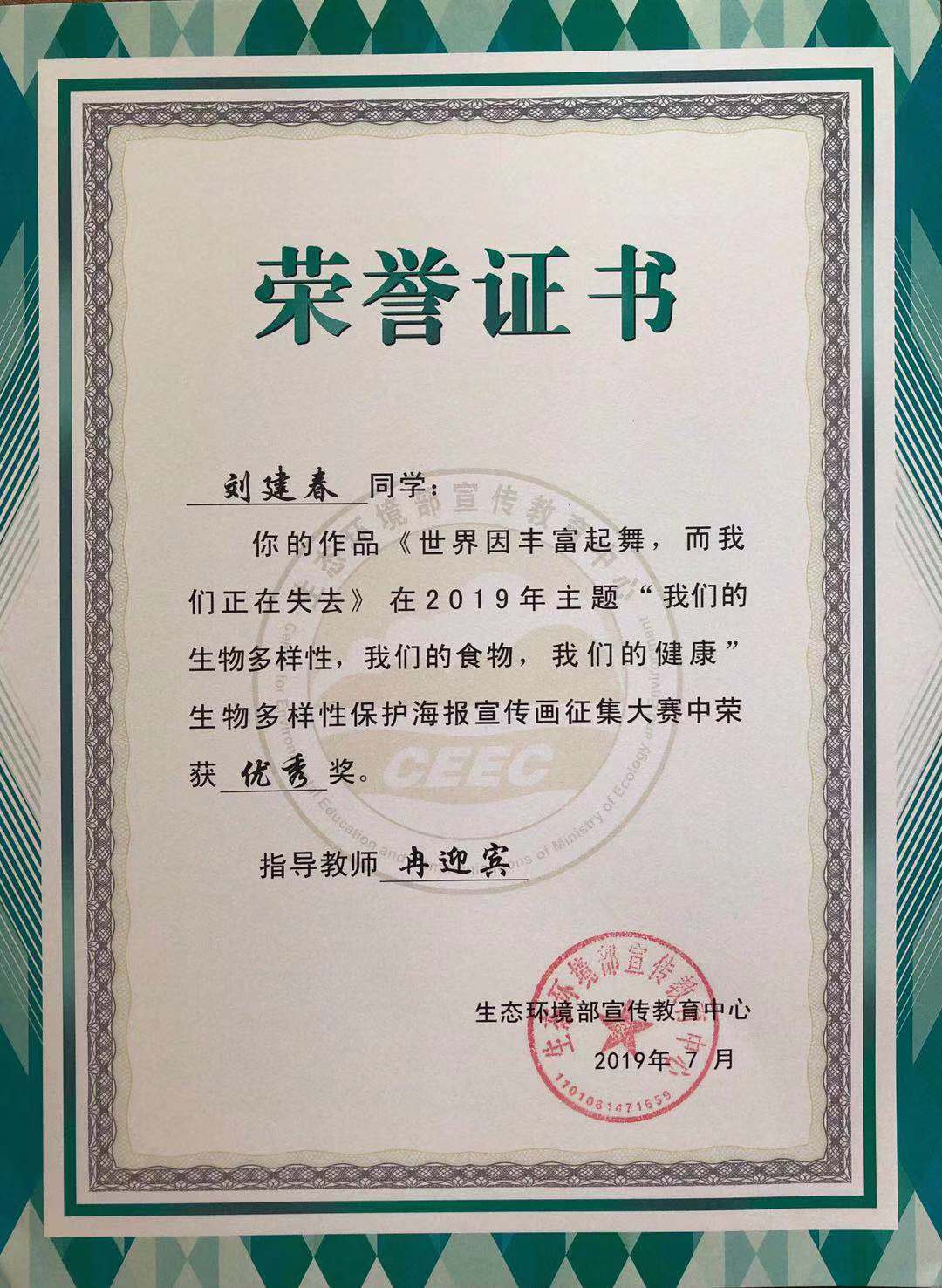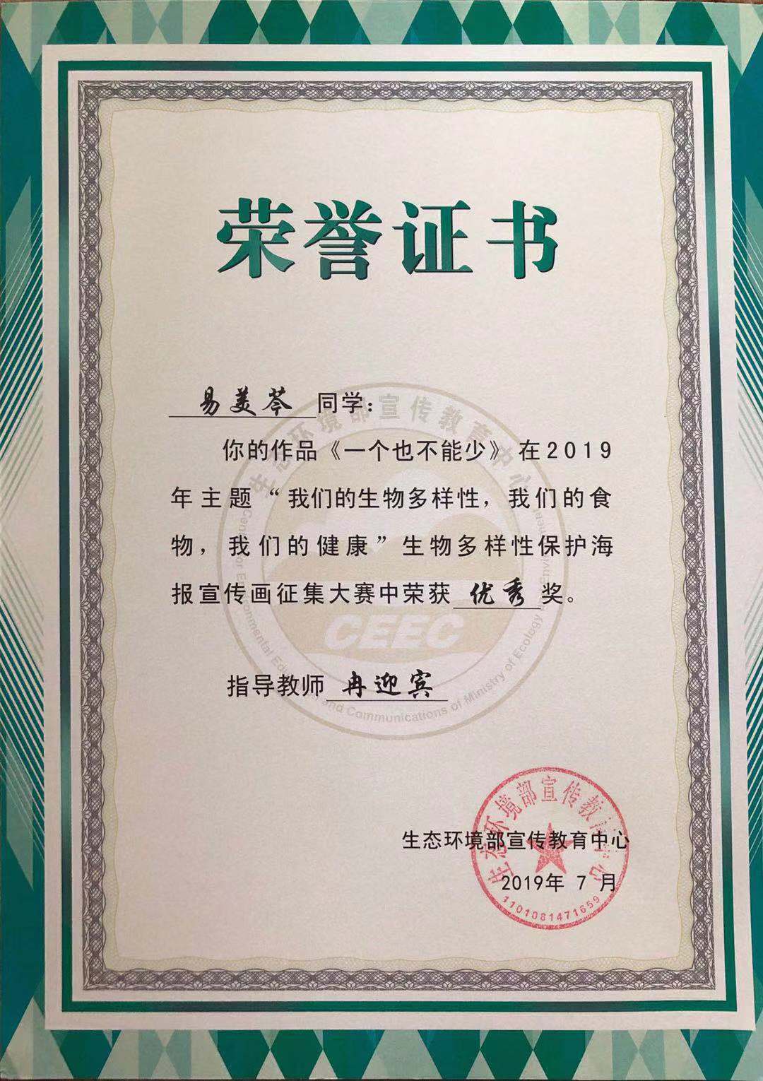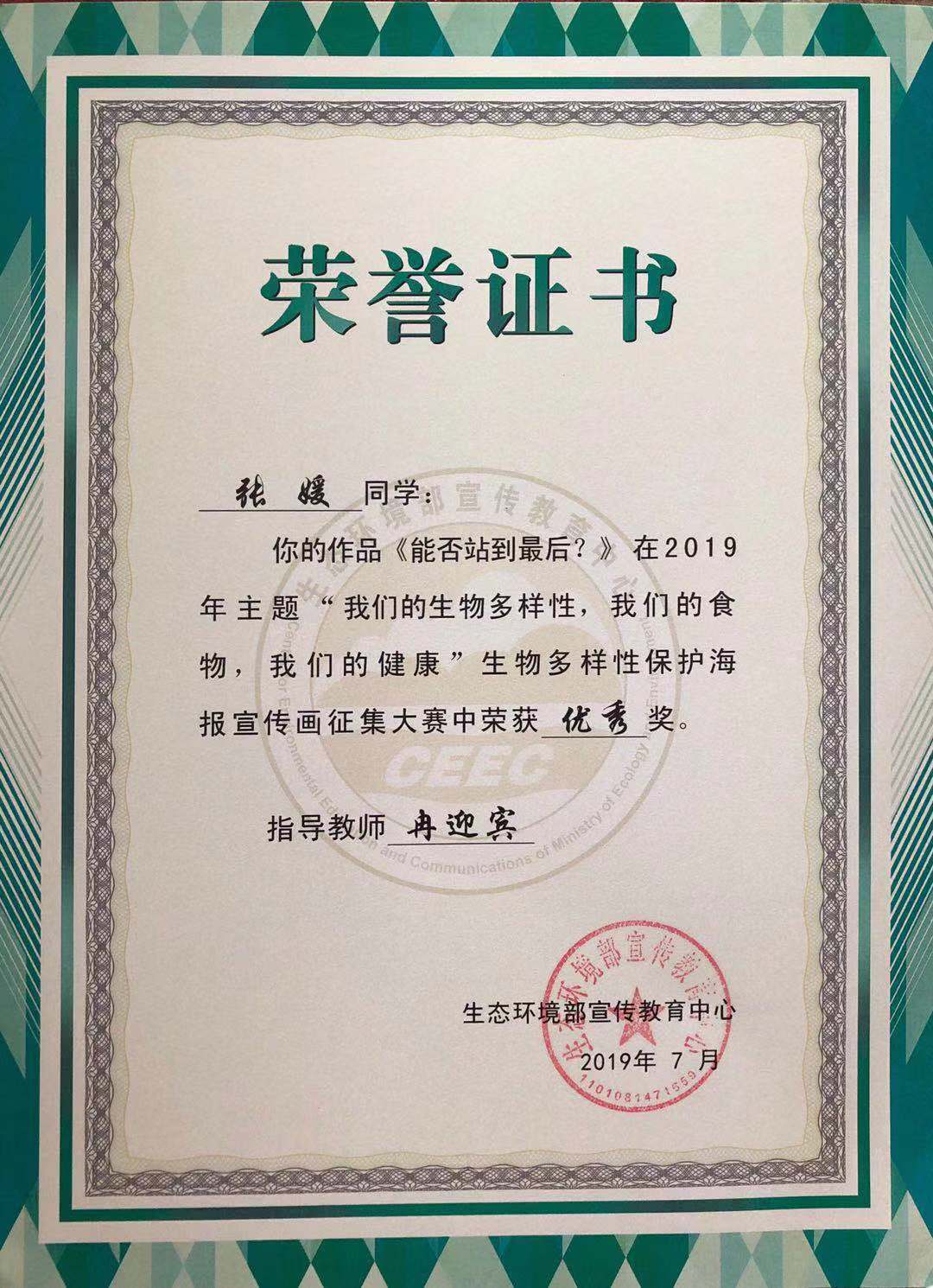 公司学子在2019年全国高校老员工生物多样性保护宣传画征集赛中喜获佳绩