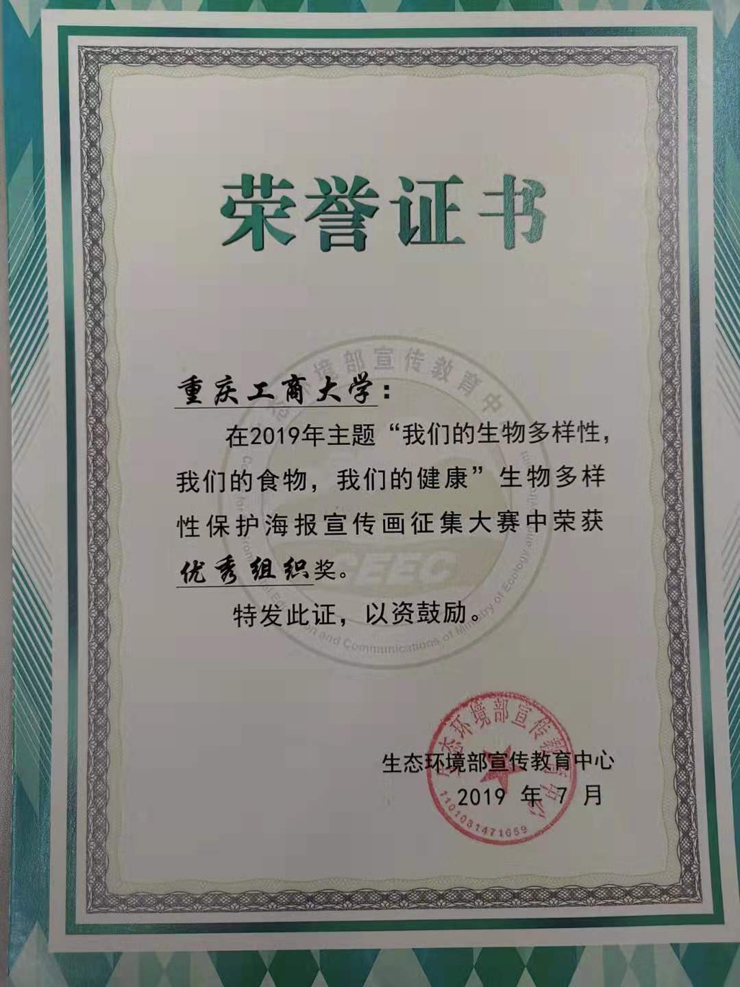 “2019年全国高校老员工生物多样性保护宣传画征集赛”于2019年7月顺利落下帷幕,在英国365上市公司的组织下,视觉传达系教师带领员工参赛,与全国200多所高校员工同台竞技,脱颖而出,喜获佳绩,冉迎宾老师指导员工邓春燕获得了一等奖、另有杨璟、易美苓、李曼瑜、张媛、刘建春等5名同学获得优秀奖,英国365上市公司也荣获大赛“优秀组织单位”奖。