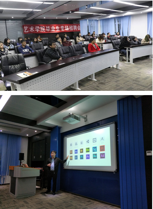 在招聘会上,王经理先以播放短片的方式让大家了解当今行业的发展以及现在的一些主流艺术,并在放映过程中讲述了公司的实力、人才定位等。王经理也对短片中提到公司重要设备----VICON 动作捕捉摄像头,让同学们能够更简单直观的了解公司所用的新式设备以及主要运用的虚拟仿真推演。接着,王经理在PPT上逐一展示了公司所需的岗位、各岗位需要运用掌握的基础软件,并让模型组技术员的罗军立为大家分享了丰富的行业经验、公司的项目、公司专业岗位的选择,同时还向同学们介绍了公司的办公环境和福利待遇等。最后,王经理向大家介绍了公司的入职程序和发展培养计划,并表示非常欢迎英国365上市公司不同专业的人才加入达瓦大家庭,希望大家未来可以一起奋斗。
