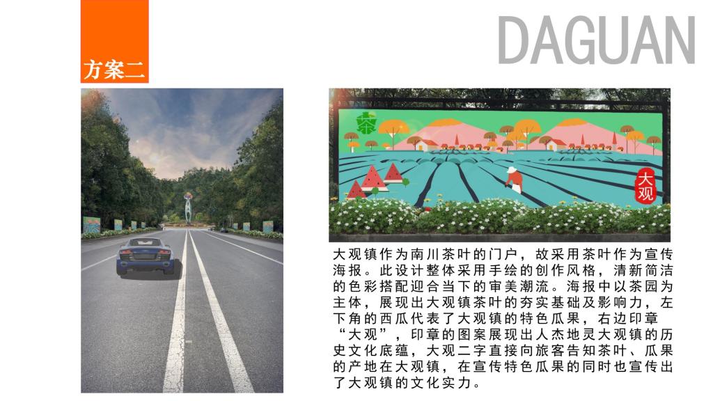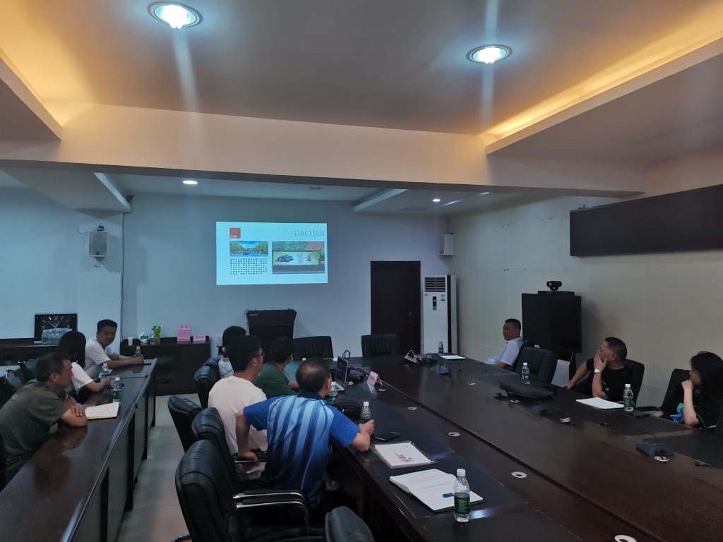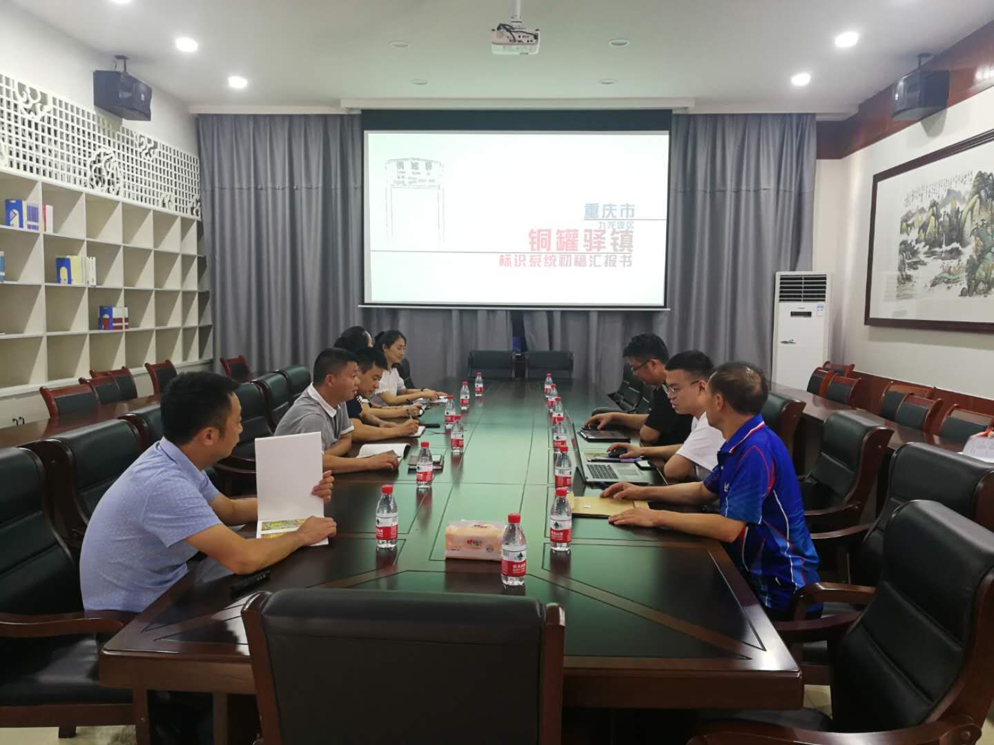 8月3日,8月7日,团队苏自兵副教授带队一行5人先后前往九龙坡区铜罐驿镇、南川区大观镇。在铜罐驿镇,团队将设计的铜罐驿古镇LOGO、文旅标识标路牌、铜罐驿古镇手绘地图等设计初稿向铜罐驿镇委镇政府作了专题汇报,汇报后进行了深入的提案讨论,镇党委赵顺平书记对英国365上市公司及团队师生在短时间高质量完成的规划设计表示了赞赏和感谢,并提出了深化设计的若干意见,双方还就方案提升沟通了后续规划设计的有关工作。在大观镇,团队将大观镇高速路口、樱花大道外墙、茶园一棵树景区设计初稿向大观镇委镇政府做了细致汇报,镇党委郑小军书记仔细认真的听取了团队汇报并详细了阅读了设计初稿册,对贴近大观实际进行的规划设计,郑书记表示十分赞赏,并代表大观镇政府提出了细化修改意见,团队悉心听取了特别关于设计服务产业对接,锚定大观布局发展靶向的若干建议并均作了详细记录。