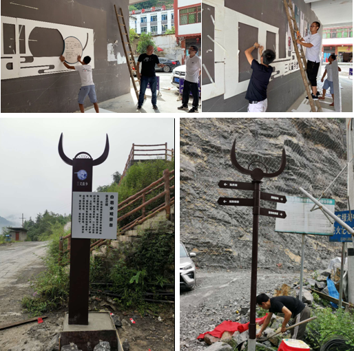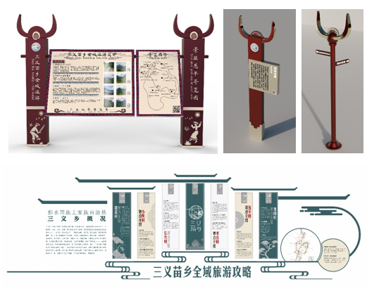 历时40余天,项目组完成了富有三义乡民族特色、旅游资源特点的标志、宣传口号、景点标识牌、总体介绍牌、亭台牌匾的设计、制作与现场安装,展示了高校智力扶贫的物化成果,是高校服务地方经济社会发展的生动案例,也是艺术公司助力扶贫攻坚的典型实践。