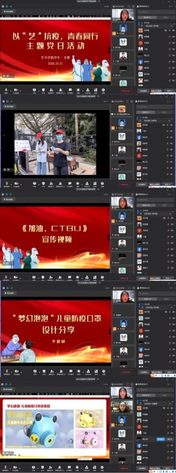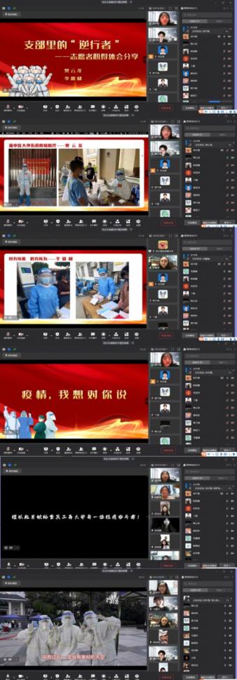 “阳光下,一位位勤劳的身影,化身为工商大的天使……我们坚信,疫情终会过去!美好即将来临!重庆加油!重工商大加油!”活动在支部书记宋宝莲老师、组织委员郭本玲老师、员工党员丁锴和周梦亚朗诵的《追光者》中拉开帷幕。随后,大家一起观看了由公司新闻中心出品的宣传视频《加油,CTBU》,同学们透过屏幕感受到疫情之下公司和老师们守护员工和校园的决心和勇气,不禁潸然泪下。