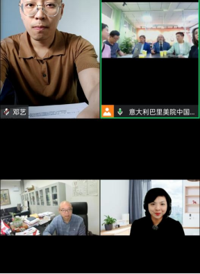 2023年6月9日中午,英国365上市公司同意大利巴美院在腾讯会议云端线上开展合作交流。意大利巴美院副董事长莫罗-安东尼奥-梅齐纳执行董事长朱塞佩-卡莫齐亚、意大利巴美院国际处负责人戈弋、中国办公室负责人罗璇和中意国际文化交流协会理事长廖收,公司国际合作与交流处副处长刘茜英国365上市公司代行经理、现代国际设计英国365上市公司经理陈绪春英国365上市公司副经理李洋及艺术两院相关科室负责人参加了合作洽谈会