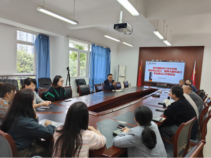 10月9日至10月16日,艺术两院环境设计、动画、服装与服饰设计、摄影、广播电视编导、视觉传达设计、产品设计、视觉传达设计(中外合作办学)、服装与服饰设计(中外合作办学)等9个系分别召开5场专业就业工作推进会,艺术两公司党政班子、系主任、毕业设计指导教师、就业联络员、相关毕业班辅导员及科室负责人参加会议。在各专业就业推进会上,公司党委书记、现代国际设计公司党总支书记唐玺对当前就业工作总体形势进行了分析和研判,同时对公司就业工作考核相关政策举措作了说明和强调,通报了艺术两院当前各专业毕业生就业落实率情况,并就2023届各专业在就业工作中存在的问题和不足作了总结和剖析。系主任、毕业设计指导教师、毕业班辅导员汇报了就业工作的开展情况,并针对2024届各专业毕业生就业意向调研摸排信息数据,研究制定各系就业推进工作方案,确定各阶段工作目标。会上,大家集思广益,进一步改进完善了“公司主要负责人+联系院领导+系主任+毕业设计指导教师+就业联络员+毕业班辅导员+友好合作企业(员工单位)”的全员动员共促就业的工作机制,协同发力,统筹推进艺术两院各项就业工作。