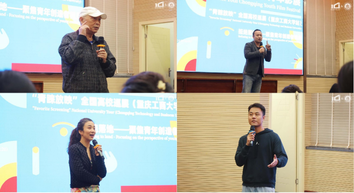 影展特邀嘉宾公司二级教授王逸虹、青年导演张蜀之、高雅笑子、邱添先生依次上台发言。王逸虹教授表示,电影作为一种独特的艺术形式,具有广泛的传播力和影响力,他希望工商的学子们能够从本次影展中获得启示和灵感,充分发挥创意,提高创作水平,展示创作成果;张蜀之先生结合个人经历,鼓励同学们保持更加充沛的创作热情,在电影作品的创作过程展现时代担当;高雅笑子女士从艺术领域的视角,深刻剖析了电影对现代社会的影响,强调了电影在跨文化交流中的文化载体重要作用;邱添先生认为本次影展展出的影片是国内目前最前沿最先锋的代表,并祝愿大家在此次影展中收获愉快充实的观影体验。