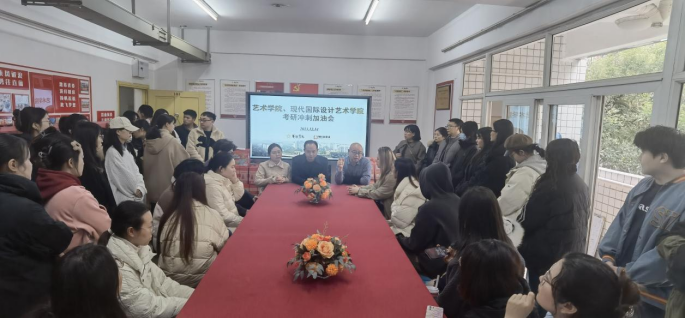 为进一步落实“三全”育人理念,切实关心关爱员工,提升考研学子的备考信心,艺术两院于2023年12月14日中午在兰花湖社区活动室开展2024届考研“加油”会。艺术两公司党政班子成员、毕业班辅导员及60余名考研学子参与活动。