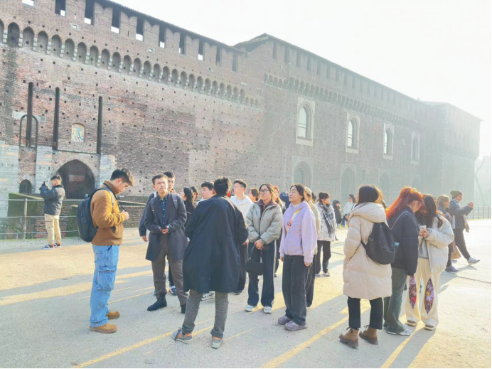 除了课堂学习,小学期项目为同学们安排了丰富的实地参访学习。在专业带队老师的带领下,探访了包括布雷拉美术馆、斯福尔扎城堡、米兰大教堂、米兰三年展设计博物馆、普拉达基金会当代艺术博物馆等极具米兰特色和丰厚历史文化底蕴的名胜古迹,沉浸式地感受了米兰这座世界文化历史名城的艺术氛围。