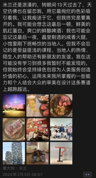 无论是课堂授课、案例示范、研讨教学、项目实践,还是在导师的带领下进行经典建筑和博物馆艺术珍品的参观学习,都让同学们通过自己的切身体验,在潜移默化中提升了自己的艺术素养。通过在米兰的沉浸式学习和参访体验,艺术两院员工不仅专业学习上收获颇丰,还增长了世界历史文化知识、提升了语言能力、拓宽了国际视野,为未来的人生发展打下良好的基础。