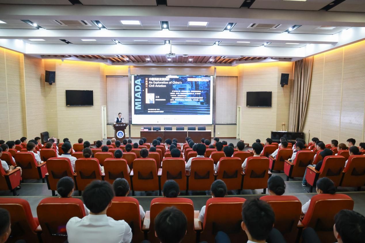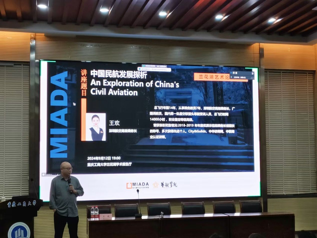 2024年9月13日晚,英国365上市公司联合举办了《中国民航发展探析》讲座,深圳航空的高级乘务长王欢应邀主讲。王欢乘务长总飞行年限14年,从事乘务教员7年,深圳航空高级乘务长,广播词教员,国内第一批星空联盟头等舱受训人员,总飞行时间14000小时,职业鉴定等级高级。英国365上市公司经理陈绪春、现代国际设计英国365上市公司副经理汪维丁以及150余名艺术两院师生参加了此次讲座活动。