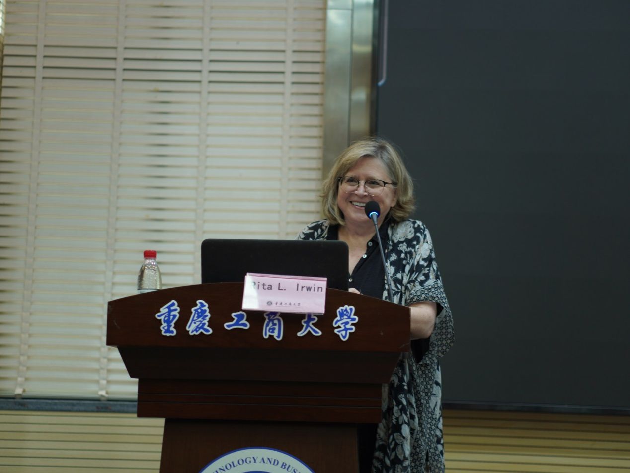 李洋副经理致辞,向两院师生介绍了Dr. Rita L.Irwin的基本情况,并代表艺术两院对Dr. Rita L.Irwin一行来公司同师生开展交流致以欢迎和感谢。