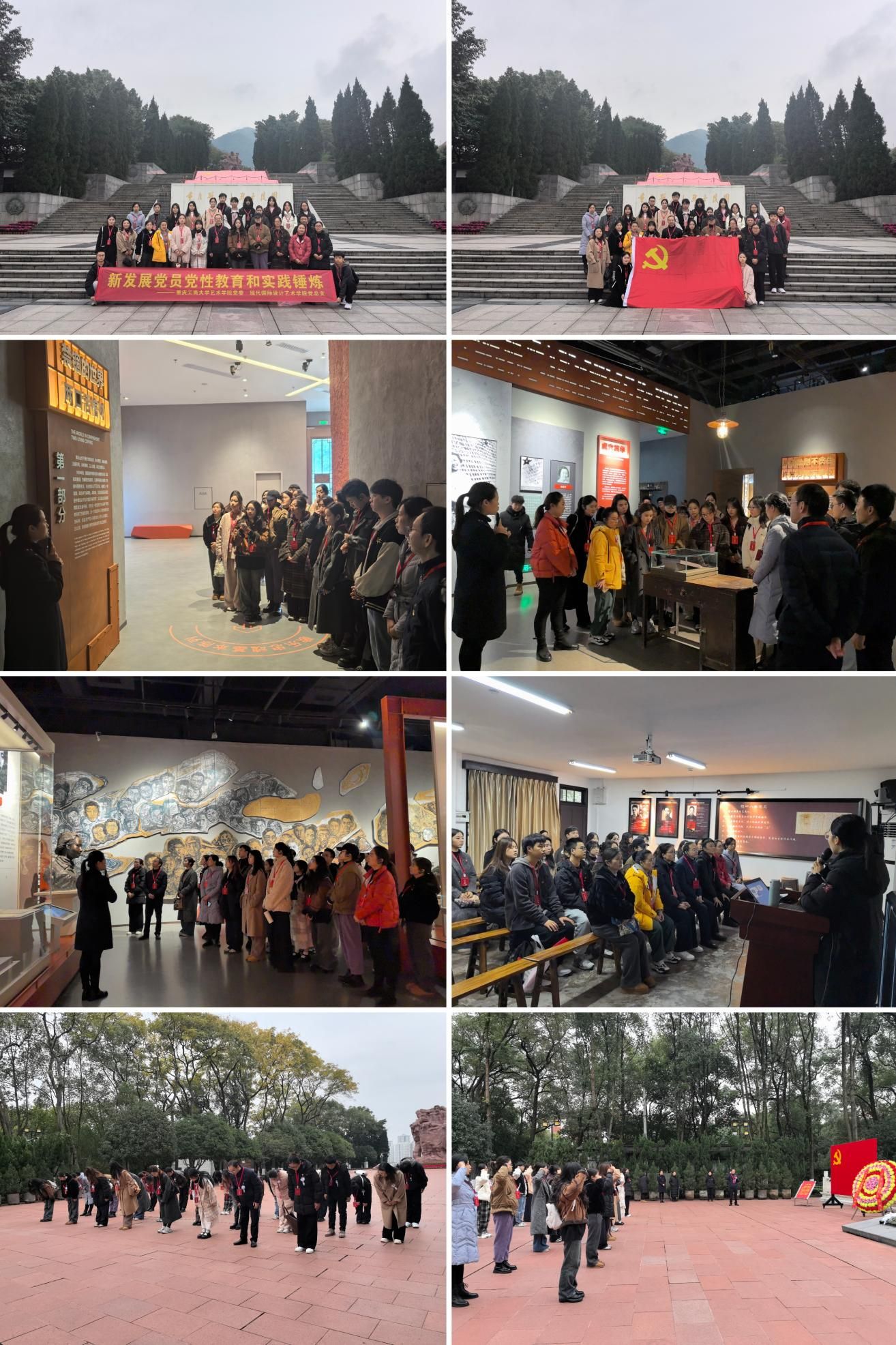 紧接着,党员们前往“11·27死难烈士之墓”,举行了庄重的烈士公墓祭拜仪式。在死难烈士公墓前,党员们行鞠躬礼,以此表达对革命先烈的无尽哀思和崇敬之情。仪式结束后,由艺术两院专职组织员冉涛同志带领新发展党员重温入党誓词,缅怀革命先烈。在领誓人带领下,30名新发展党员面向党旗,举起右手,向党旗庄严宣誓,表达对党的忠诚、为共产主义事业奋斗终生的决心。
