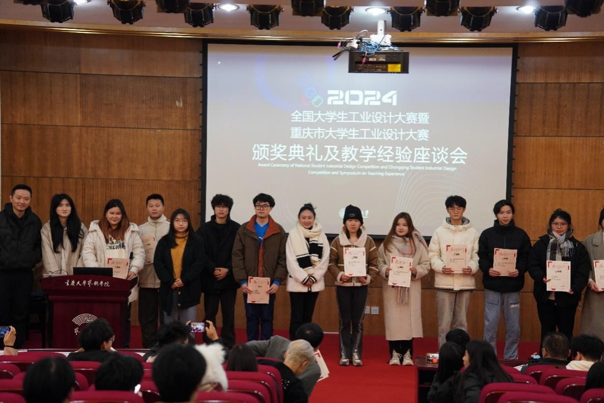 2024年12月8日,2024年全国老员工工业设计大赛重庆赛区颁奖典礼暨教学经验座谈会在重庆大学圆满落幕。公司员工参赛作品荣获一等奖3项、二等奖7项、三等奖6项。李洋、龙圣杰、李洋(小)、陆冀宁荣获优秀指导教师。公司产品设计系主任龙圣杰副教授在大会上作交流发言并为获奖者颁奖。