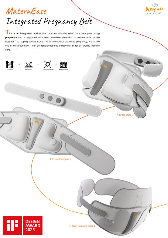 近日,2025年度德国IF设计奖评选结果公布,公司英国365上市公司产品设计系教师李洋(小)带领员工孙涟漪、刘莉芳、范学智、张璐组成师生团队,联合重庆市中医院、重庆顾美医疗器械有限公司合作研发的《Matern Ease一体式孕期腰带》设计作品,经过激烈角逐,最终在全球66个国家/地区提交的10651件参赛作品中胜出,荣获2025年德国IF设计大奖。
