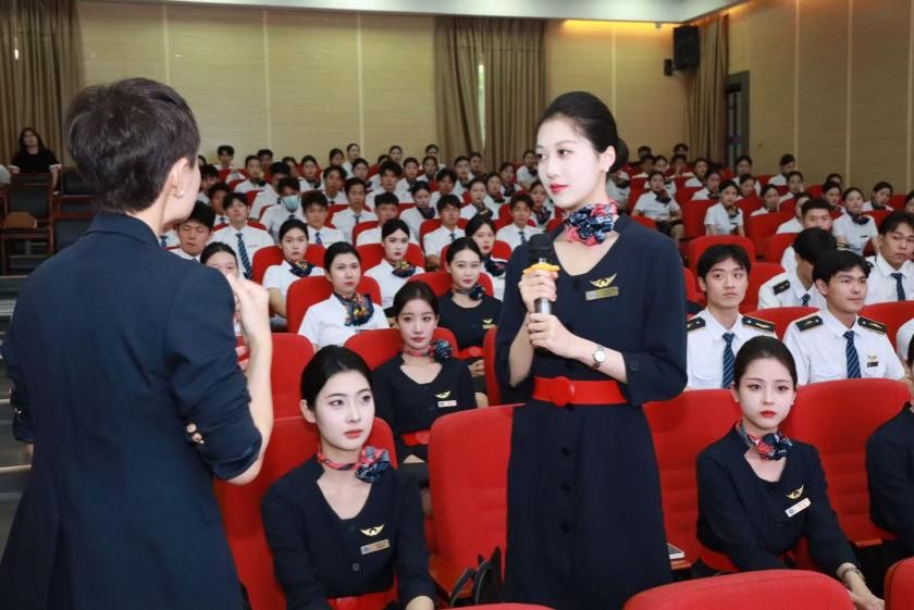 9月22日,国航客舱经理王穗渝与员工互动