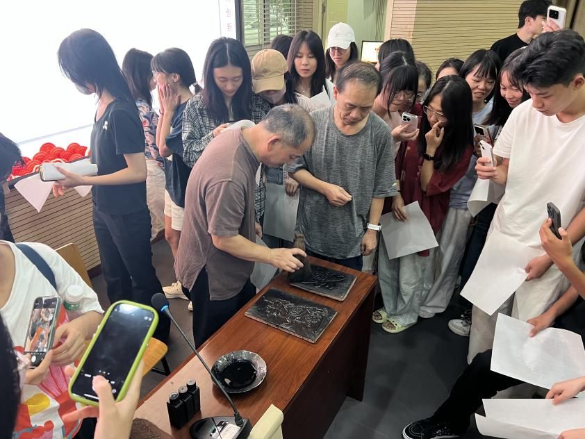 与师生一起印制年画