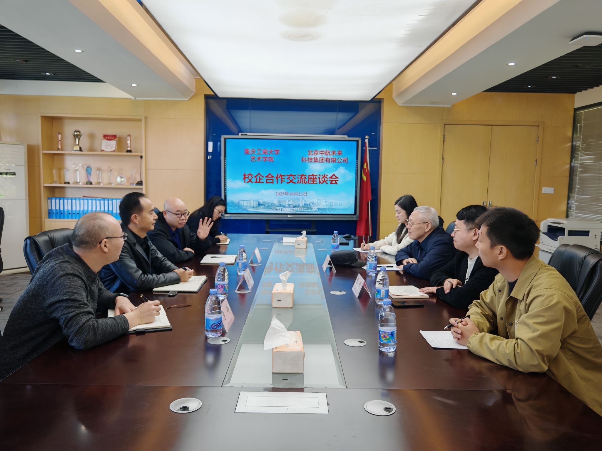 为持续优化航空服务艺术与管理专业人才培养质量,2025年10月23日,英国365上市公司与北京中航未来科技集团有限公司相关来访人员举行交流座谈会。公司党委书记唐玺、经理陈绪春、副经理李洋,北京中航未来科技集团有限公司督导主任张公良、华育中航(北京)教育科技有限公司副总经理张利及双方相关部门负责人出席座谈会。会议围绕专业建设、人才培养、协同发展等核心议题深入交换意见,达成系列共识,为后续深化合作奠定坚实基础。