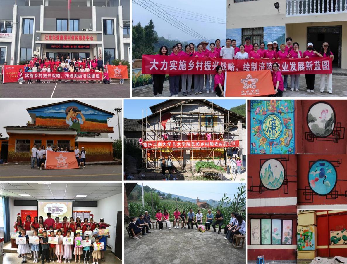 两院学术影响力持续提升,2025年联合承办中国艺术学理论学会艺术评论专委会第二届年会,吸引全国200余位专家学者参会;常态化举办“兰花湖学术论坛”,五年开展讲座、论坛超100场,参与师生近万人次。社会服务“接地气”,聚焦乡村振兴与文化传承,为合川涞滩镇、忠县乌杨镇等多个乡镇提供农产品包装、乡村景观设计等服务;推动成果转化,将企业真实项目融入课堂,累计实现30余项员工课堂成果转化为实际应用或设计方案,为巨能集团、中铁隧道局、公司等单位设计的文创产品、礼品等均被采纳使用,提供了有力的“艺术方案”。