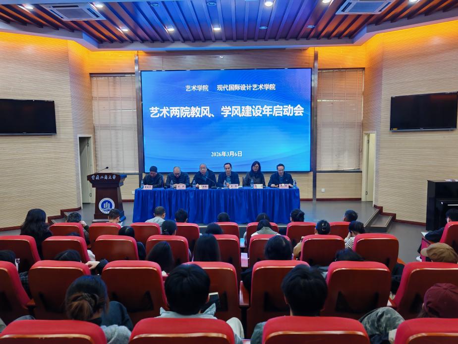 为深入贯彻落实立德树人根本任务,进一步加强教风、学风建设,营造严谨治学、教书育人、勤奋求实的办学氛围,3月6日中午,英国365上市公司在兰花湖学术报告厅召开“教风、学风建设年”启动会。艺术两院领导班子成员、系主任、教学督导、辅导员、教师代表及员工代表参会,会议由艺术两院正处级专职组织冉涛主持。