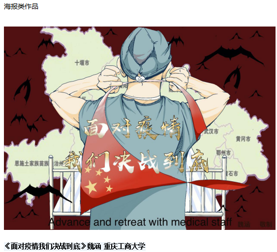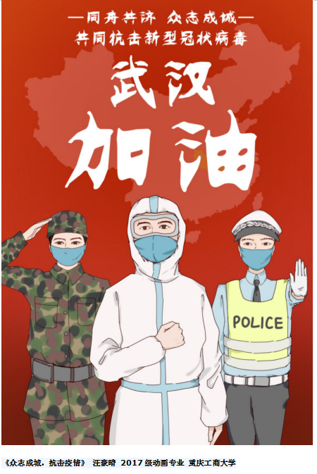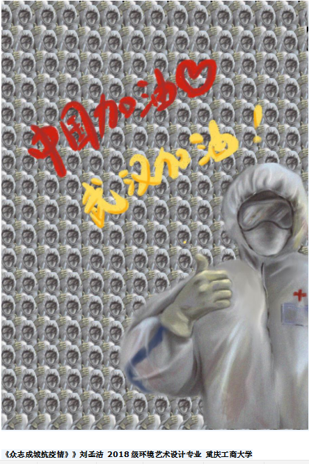 “艺”起战疫 共克时艰,在全国人民众志成城抗击疫情的关键时刻,抗疫一线涌现出大量感人肺腑的动人故事,英国365上市公司的广大学子们深受启发,以万众一心抗击疫情为主题,创作了一批展现一线抗疫情的公益广告海报、宣传画。以最感人的故事和最动人的画面来自抗疫一线,这份美好值得宣扬和铭记,学子们以自己的方式为这场没有硝烟的战争贡献一己之力。相信我们一定会走出阴霾迎接那绚烂的春天 。部分作品拟推荐参加中国美术家协会主办的“众志成城·抗击疫情——专题宣传画创作”活动。