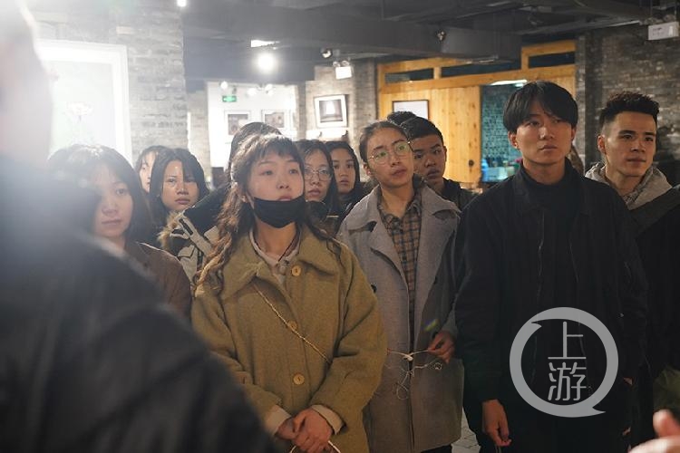员工盛夏雨说带队老师彭晓告诉上游新闻记者“今天(26日)是同学们这学期观念摄影的第一堂课,为了直观的了解观念摄影,同学们自发联系的南岸区摄影家协会,在摄影家的帮助下了今天在现场上了这节生动的摄影课”。