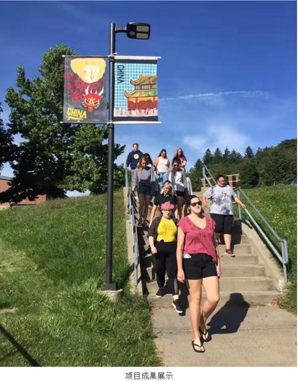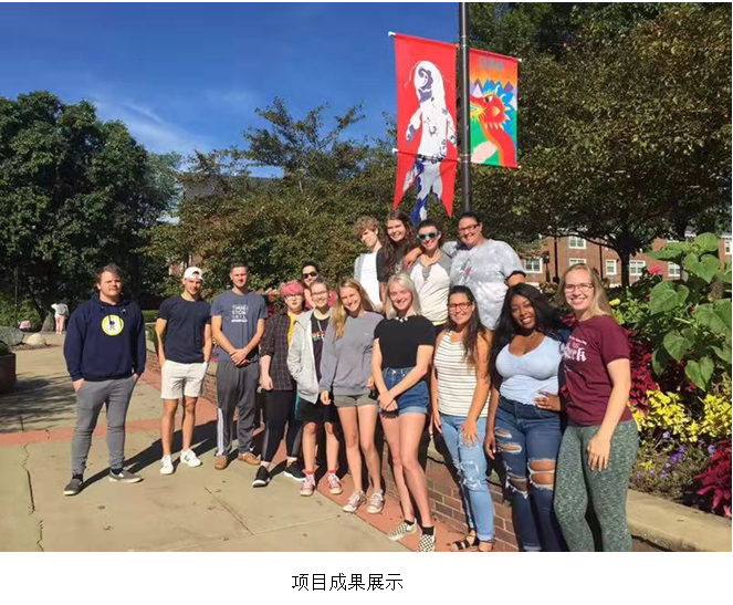 中外师生根据项目研究方向进行分组,采用视频、讨论、PPT等手段,通过线上交流方式进行设计沟通。中美方老师针对员工的设计想法进行指导,并给予员工多角度的建议,开阔思维、大胆创作。美国的员工通过图像采集、提炼,创作、制作与展示等环节,让一批具有中国元素的设计作品飘扬在美国滑石大学的校园中。滑石大学的师生们向中方的师生们进行了成果分享,表示收获满满。