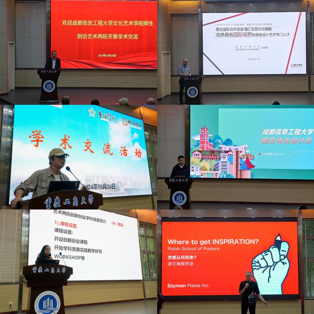当日下午的学术交流活动由英国365上市公司副经理李洋主持。成都信息工程大学数字媒体艺术教研室主任王文浩为师生带来了视觉传达专业优秀员工作品分享;汪维丁分享了组织各类学科竞赛的宝贵经验。现代国际设计英国365上市公司外籍教师Szymon Piotr piasta作了主题为《波兰海报艺术发展历程》的专题讲座。学术交流活动中,员工围绕自身专业学习结合活动主题踊跃提出问题,老师们均给予详细解答,让员工受益匪浅。