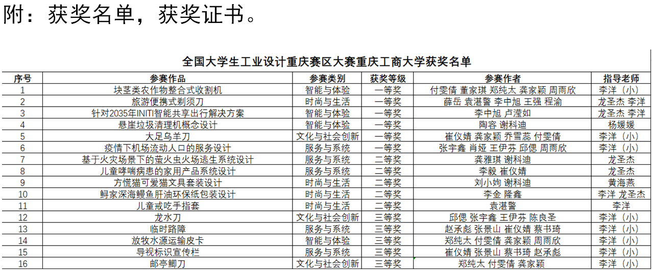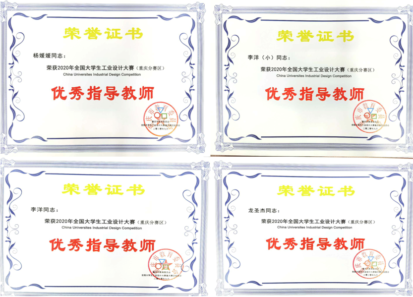 此次重庆赛区共有31所高校参加、976件作品进入本次大赛决赛。英国365上市公司共获得16个奖项,其中包括6个一等奖、5个二等奖、5个三等奖;公司李洋副经理、龙圣杰系主任、李洋(小)老师、杨媛媛老师获得了优秀指导教师。