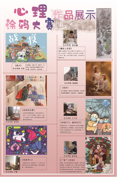 本次大赛巧妙的将心理健康教育与绘画结合在一起,让同学们在绘画的过程中认识了到心理健康的重要,表达了凝心聚力、共克时艰的信念,也让同学们的创作能力得到了提升。