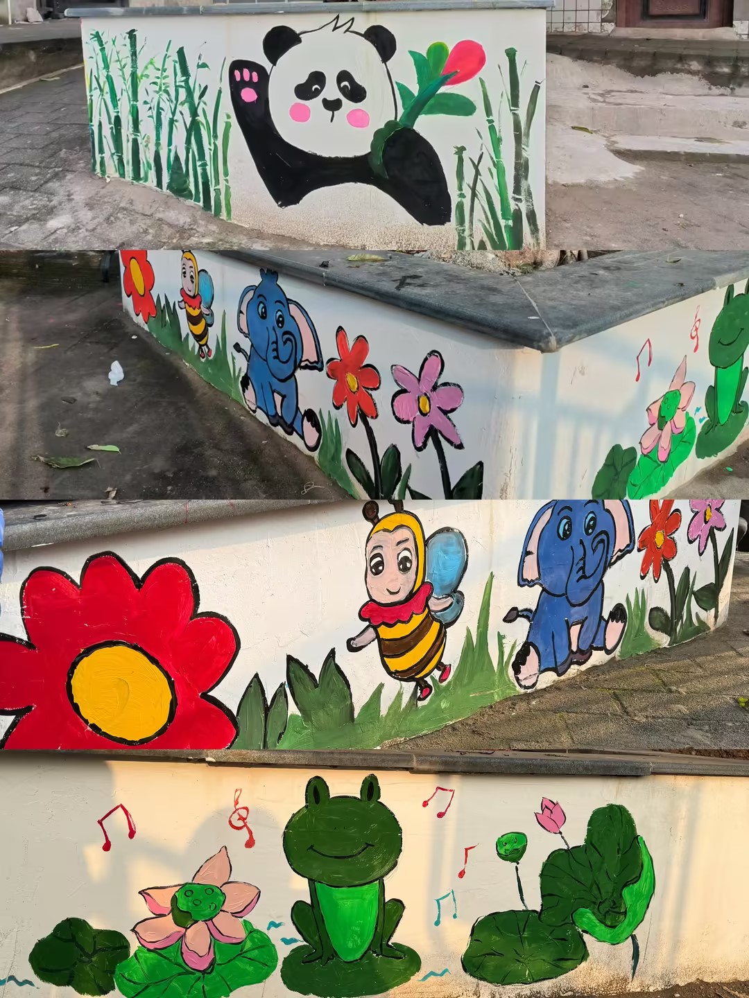 桥湾小区部分边角空间曾存在墙面斑驳、景观单调等问题,成为社区环境治理的“小痛点”。为响应居民对美好人居环境的期盼,两方以“微改造”撬动“大民生”为理念,精准对接需求推出墙绘共建项目,让“边角料”空间变身邻里共享的“风景线”。活动现场,员工志愿者提前做好墙面清洁、构图打稿等准备工作,社区小朋友们在指导下手持画笔,或勾勒卡通形象,或填充明亮色彩,将环保理念、邻里和睦、社区生活等元素融入画作。从线条勾勒到色彩晕染,从创意构思到细节完善,长幼搭档默契十足,原本单调的墙面逐渐绽放出鲜活生命力,吸引不少居民驻足点赞、拍照留念。