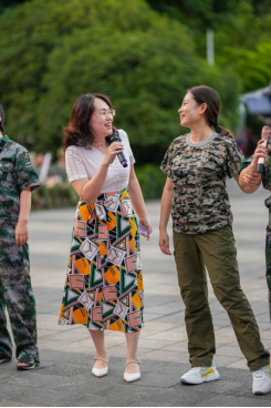 让大家最为赞不绝口的就是李莉莎书记和教导员、指导员老师们带来的歌曲《相逢是首歌》,“眼睛是春天的海,青春是绿色的河......” 歌声如翠鸟弹水,如黄莺吟鸣,老师们通过歌声向军训中的艺术学子致以亲切的问候,传达了艺术老师们“艺言思政”,守护、关爱、培养艺术人才的热情与决心。