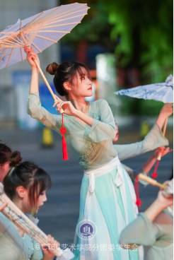 开场舞《Feel Special》拉开汇演帷幕,翁睿欣等表演者从观众两翼闪亮登场,如蝴蝶轻扇翅膀般牵动出同学们排山倒海的呼啸与呐喊。她们激情魅力的表演瞬间点燃全场热情,同学们挥舞着荧光棒,尖叫欢呼声不绝于耳。随后石洪媛、马与谦、杨宇、李秋池等同学尽展动听歌喉,为大家带来《第一天》、《椿》、《Cas》、《赤伶》等流行歌曲,这些歌曲或甜美温暖,或意气风发,或柔情中不失铿锵......动感的音乐,律动的舞姿,尽情的演唱,表演者用动人的表演诠释着青春的魅力,带领观众们回忆过往,穿越古今,一次次把现场氛围推向高潮。