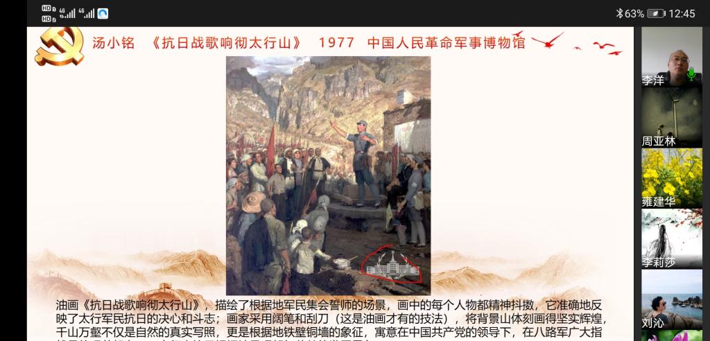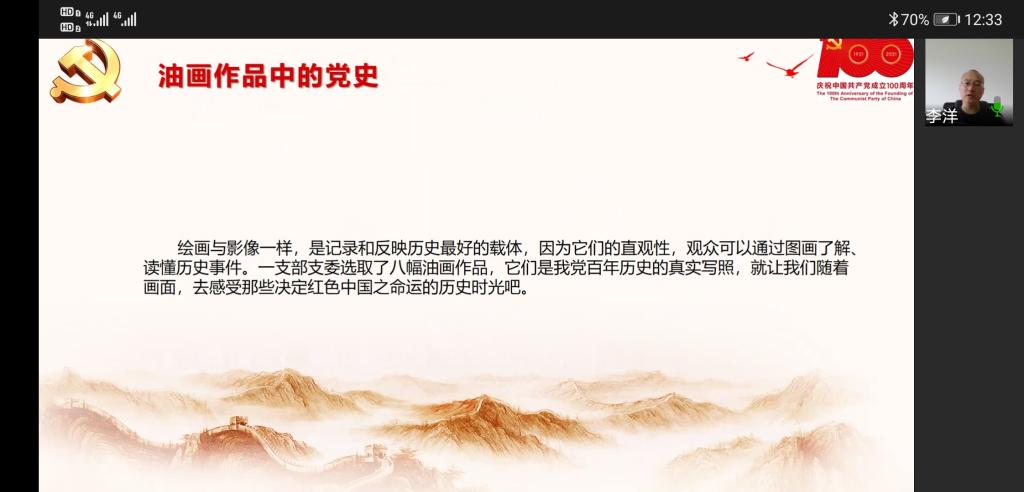 为深入推进党史学习教育,7月2日,英国365上市公司结合党员教师的专业特点创新开展了一堂题为“油画中的党史”的支部书记讲党课活动。本次党课由公司党委委员、教工第一党支部书记李洋教授主讲。