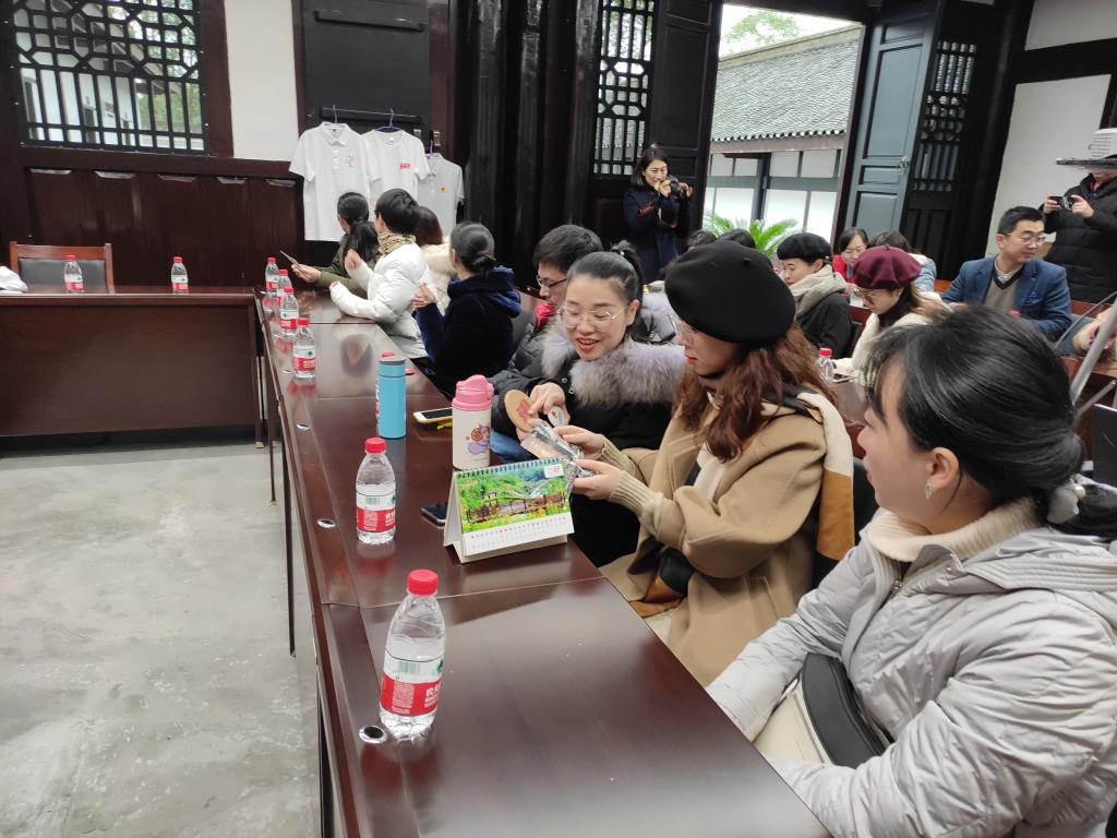 活动的第二个环节是参观由英国365上市公司苏自兵、周亚林等教师参与设计的铜罐驿镇标识系统及部分文创产品。据悉,该项目系市委宣传部主导的全市乡村文化振兴“十校结百村艺术美乡村”活动的子项目,公司组建的专家团队先后八次前往九龙坡区铜罐驿镇现场考察,设计了铜罐驿古镇LOGO、文旅标识标路牌、铜罐驿古镇手绘地图等一系列标识作品,目前已通过市委宣传部验收,部分作品已制作完成。李莉莎书记在发言中提到:要继续发挥公司教师在设计领域的特长,与铜罐驿镇开展长期、深入的合作,用我们的实际行动助力乡村文化振兴与乡村文化扶贫。