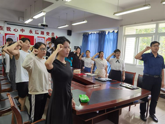 宣誓是一种仪式,更是一种承诺。支部组织委员郭本玲带领全体党员重温入党誓词,在铮铮誓词中,再忆入党初心和使命,对照誓言,查摆问题,铭记初心再出发。